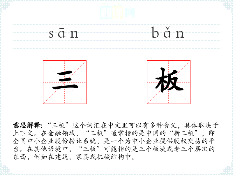 "三板"的意思解释、三板是什么意思由翻译网汉语词典查词提供。