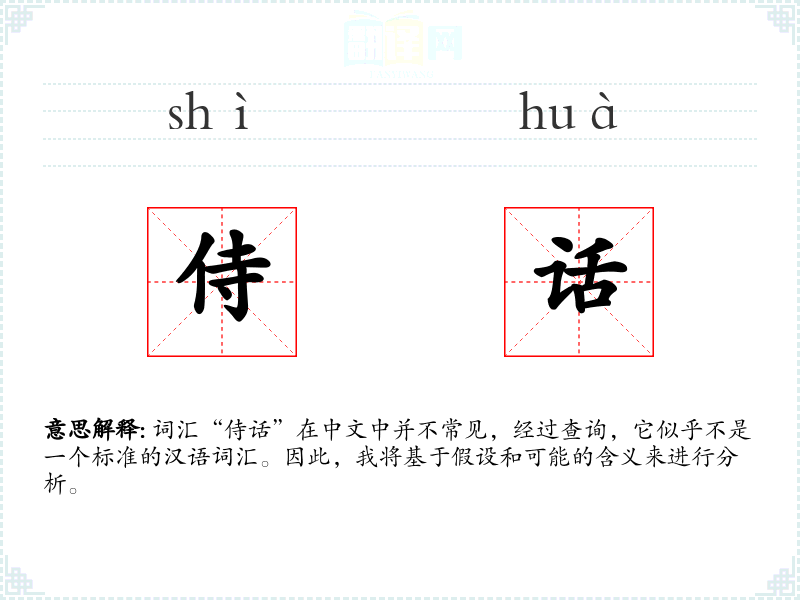 词汇“侍话”在中文中并不常见,经过查询,它似乎不是一个标准的汉语词汇。因此,我将基于假设和可能的含义来进行分析。