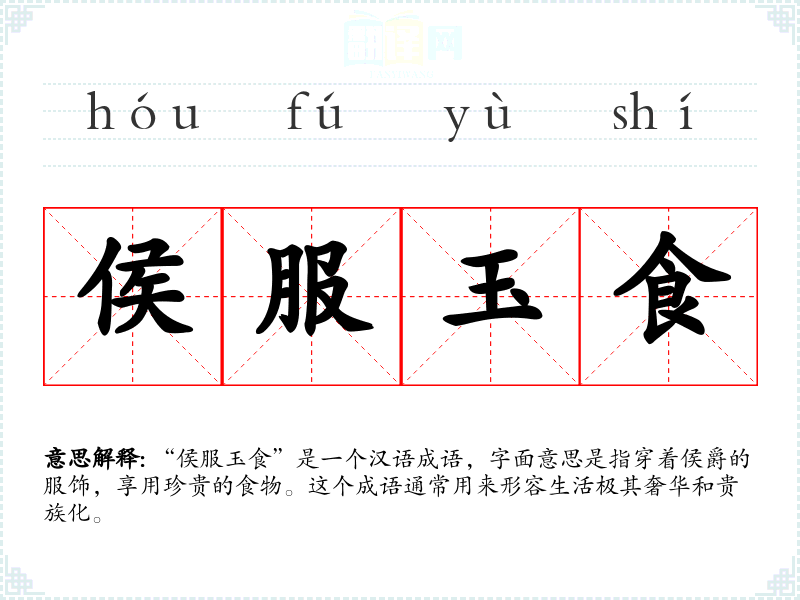 “侯服玉食”是一个汉语成语,字面意思是指穿着侯爵的服饰,享用珍贵的食物。这个成语通常用来形容生活极其奢华和贵族化。