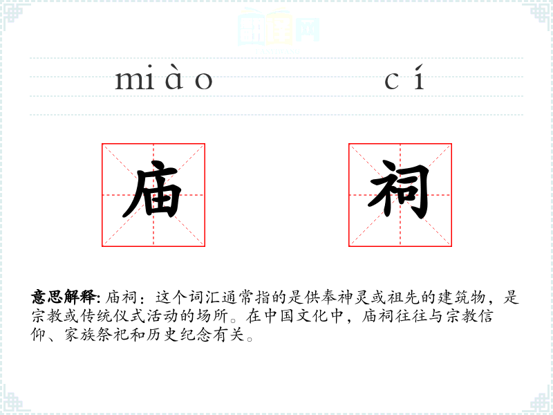 - 同义词:神庙、祠堂、宗祠