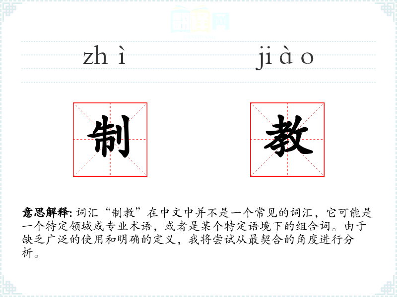 词汇“制教”在中文中并不是一个常见的词汇,它可能是一个特定领域或专业术语,或者是某个特定语境下的组合词。由于缺乏广泛的使用和明确的定义,我将尝试从最契合的角度进行分析。