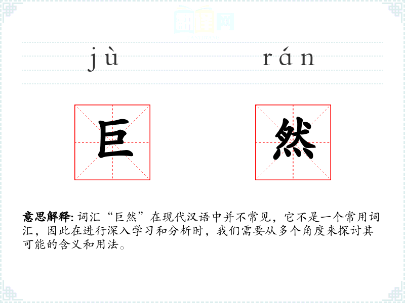 词汇“巨然”在现代汉语中并不常见,它不是一个常用词汇,因此在进行深入学习和分析时,我们需要从多个角度来探讨其可能的含义和用法。