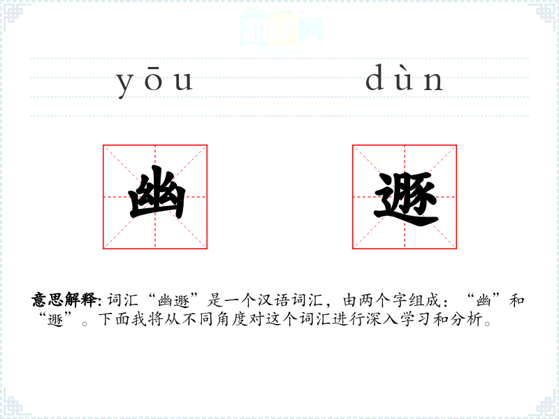 - 词源:“幽”和“遯”都是古代汉语词汇,有着悠久的历史。