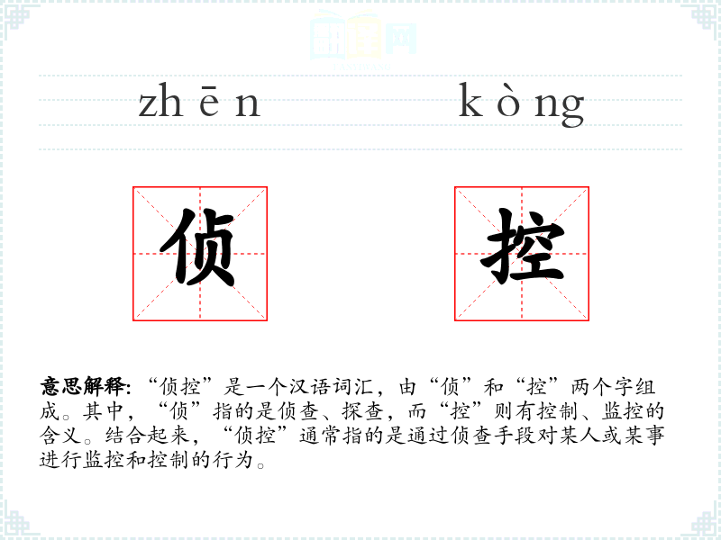 通过对“侦控”的深入学习,我们可以更好地理解其在不同语境中的应用,以及它在社会和个人生活中的重要性。在语言学习和表达中,掌握这样的专业词汇有助于我们更准确地传达复杂的概念和情感。