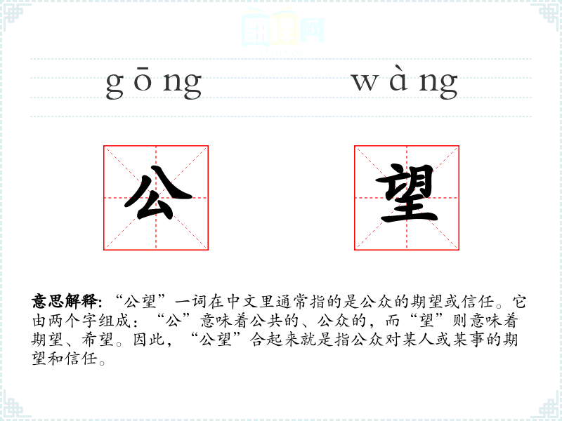 "公望"的意思解释、公望是什么意思由翻译网汉语词典查词提供。