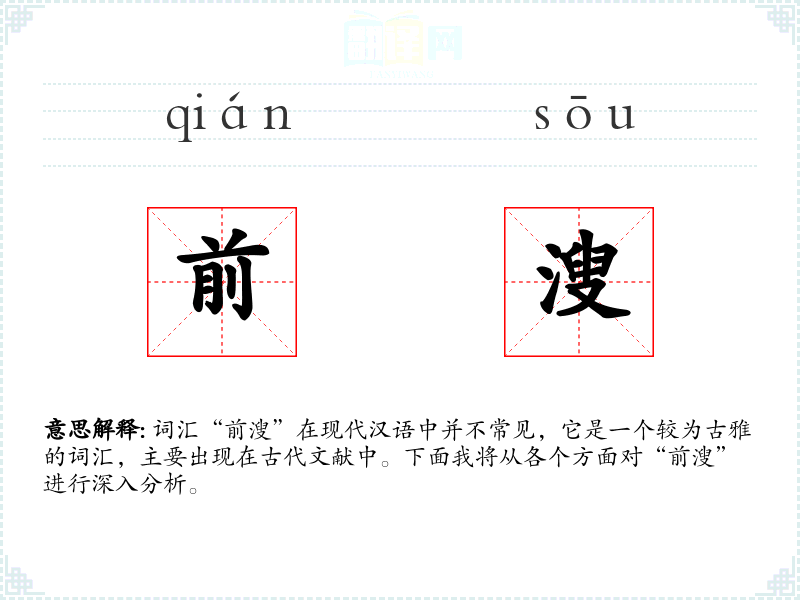 词汇“前溲”在现代汉语中并不常见,它是一个较为古雅的词汇,主要出现在古代文献中。下面我将从各个方面对“前溲”进行深入分析。