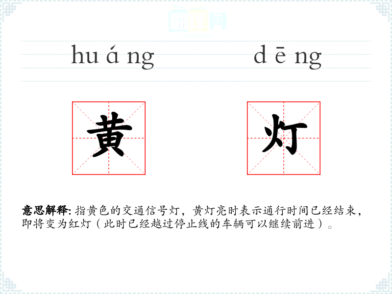 黄灯的分字解释