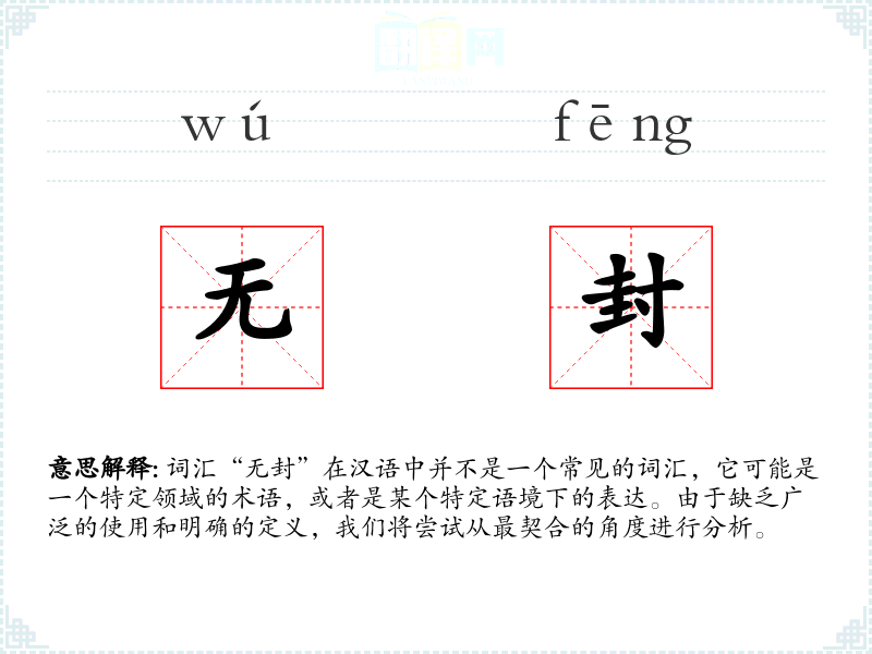 词汇“无封”在汉语中并不是一个常见的词汇,它可能是一个特定领域的术语,或者是某个特定语境下的表达。由于缺乏广泛的使用和明确的定义,我们将尝试从最契合的角度进行分析。