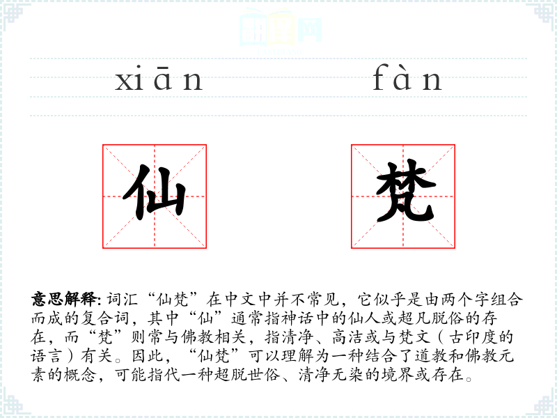 - 词源:“仙”源自古代对仙人的崇拜,“梵”源自梵文和**文化。