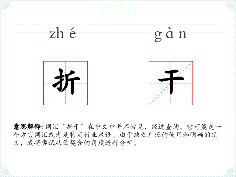 词汇“折干”在中文中并不常见,经过查询,它可能是一个方言词汇或者是特定行业术语。由于缺乏广泛的使用和明确的定义,我将尝试从最契合的角度进行分析。