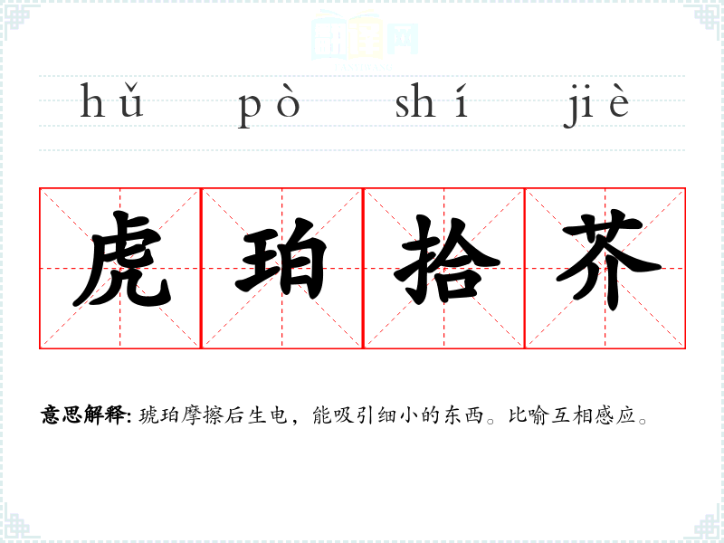 琥珀摩擦后生电,能吸引细小的东西。比喻互相感应。