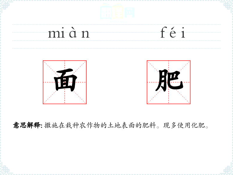 撒施在栽种农作物的土地表面的肥料。现多使用化肥。