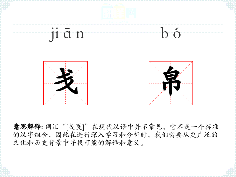 由于“[戋戛]”不是一个标准的汉字组合,我们无法直接给出其字面意思和基本含义。但是,我们可以分别分析“戋”和“戛”这两个字的意义。