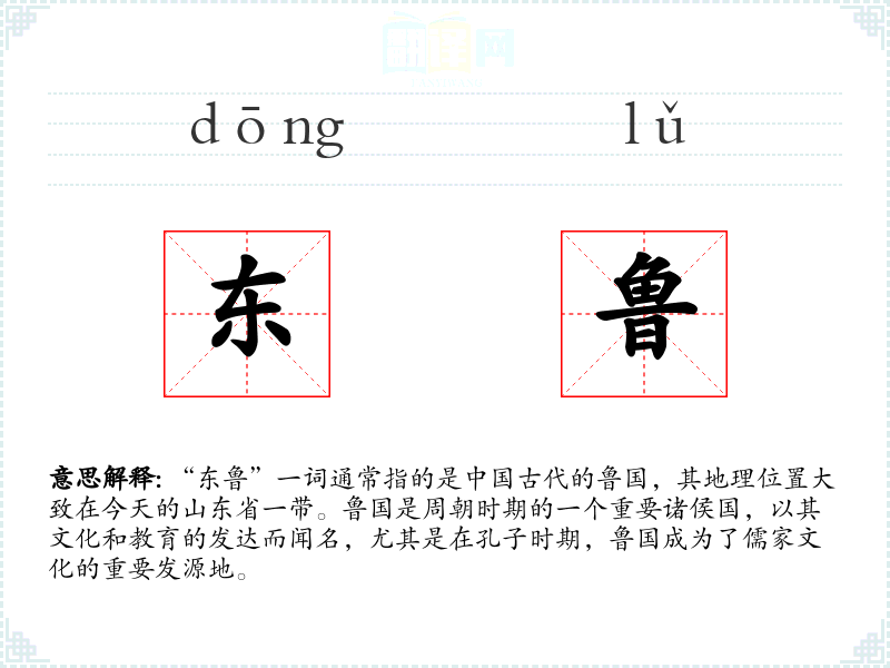 - 反义词:西域、南蛮、北狄(这些词汇在古代**用来指代边远地区,与“东鲁”的文化中心地位形成对比)