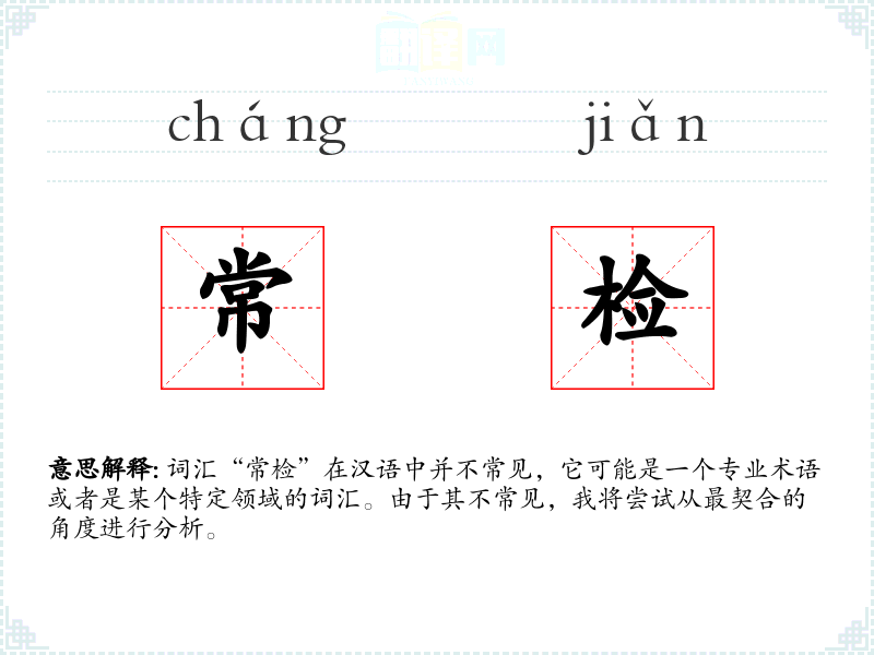 词汇“常检”在汉语中并不常见,它可能是一个专业术语或者是某个特定领域的词汇。由于其不常见,我将尝试从最契合的角度进行分析。