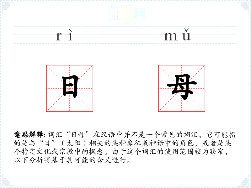 由于“日母”不是一个广泛使用的词汇,其词源可能与特定的文化或传统有关。在历史演变中,这个词汇可能随着相关神话或信仰的传播而变化。
