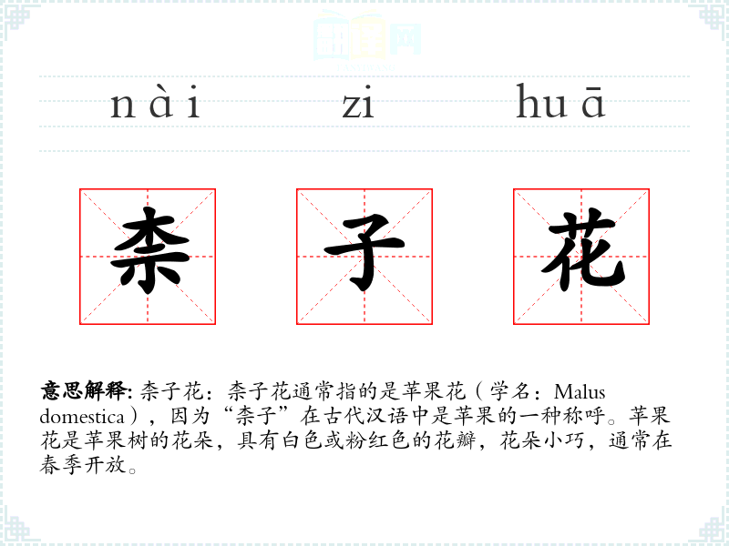 - 专业领域:在园艺或农业领域,柰子花可能被用来指代苹果树的花朵,用于讨论果树的繁殖、开花期等专业话题。