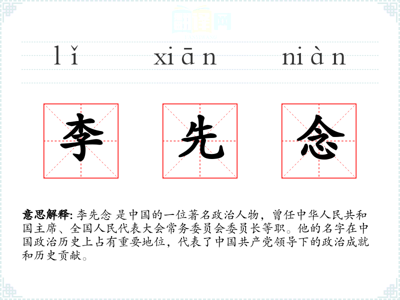 “*”作为一个专有名词,其词源直接来源于其个人姓名,没有复杂的词源演变。在,姓氏“李”非常常见,而“先念”则是一个较为独特的名字组合,体现了其个人特色。
