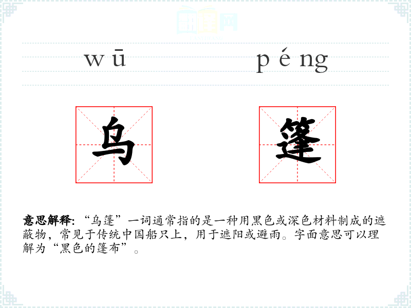 "乌篷"的意思解释、乌篷是什么意思由翻译网汉语词典查词提供。