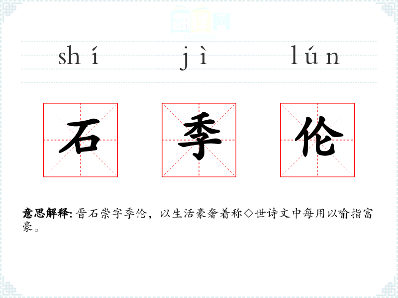 晋石崇字季伦,以生活豪奢着称◇世诗文中每用以喻指富豪。