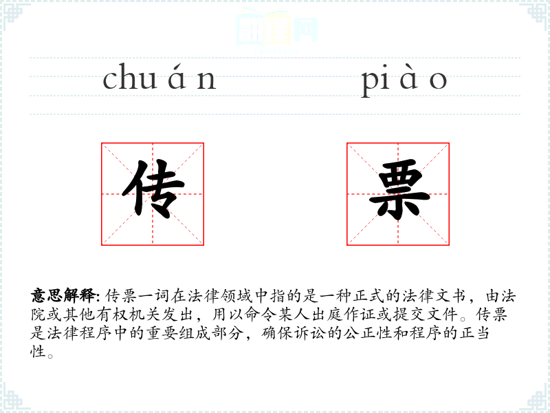 - 反义词:无(传票作为法律文书,通常没有直接的反义词)