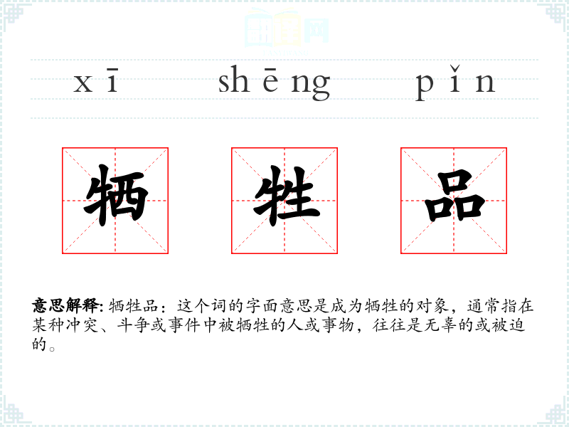 - 文学:在文学作品中,“牺牲品”常用来描述那些在权力斗争、战争或社会不公中受害的人物,如《战争与和平》中的许多角色。