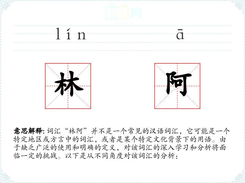 由于“林阿”不是一个标准汉语词汇,其字面意思和基本含义不明确。它可能是某个地方方言中的词汇,或者是某个特定群体中的用语。