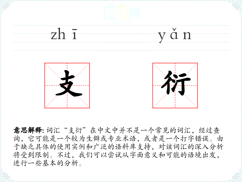 由于“支衍”不是一个常用词汇,它在不同语言或文化中的对应词汇及其使用情况可能不明显。