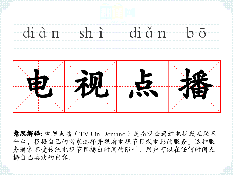 "电视点播"的意思解释、电视点播是什么意思由翻译网汉语词典查词提供。
