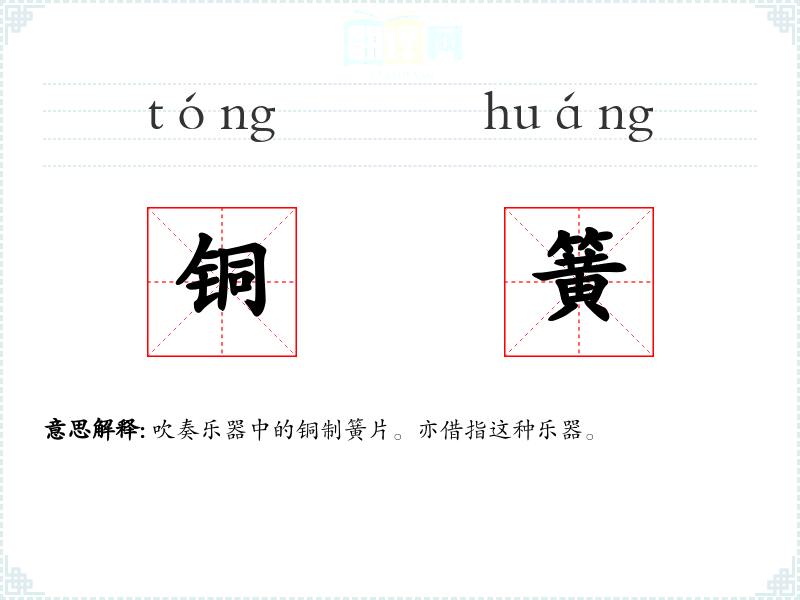 吹奏乐器中的铜制簧片。亦借指这种乐器。