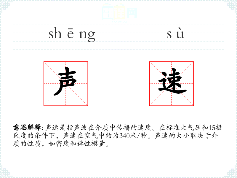 - 文学:在文学作品中,声速常被用来比喻快速或即时性,如“消息传播得比声速还快”。