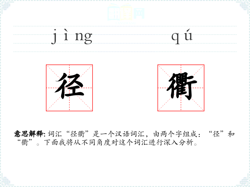 - 词源:“径”和“衢”都是古代汉语词汇,历史悠久。