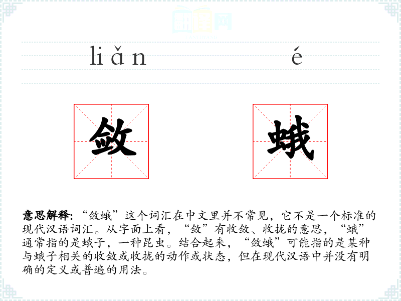 由于“敛蛾”不是一个标准的现代汉语词汇,它在不同的语境中可能没有固定的使用方式。在古代文学或特定的文化语境中,可能会有特定的含义或象征意义,但在现代文学、口语或专业领域中,这个词汇并不常见。