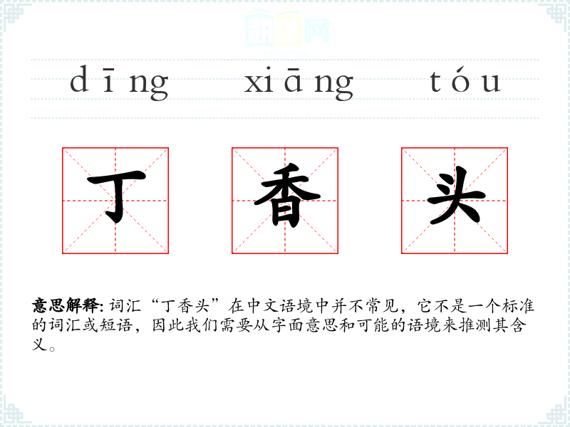 在不同语言或文化中,可能没有直接对应“丁香头”的词汇,因为它不是一个常用词汇。