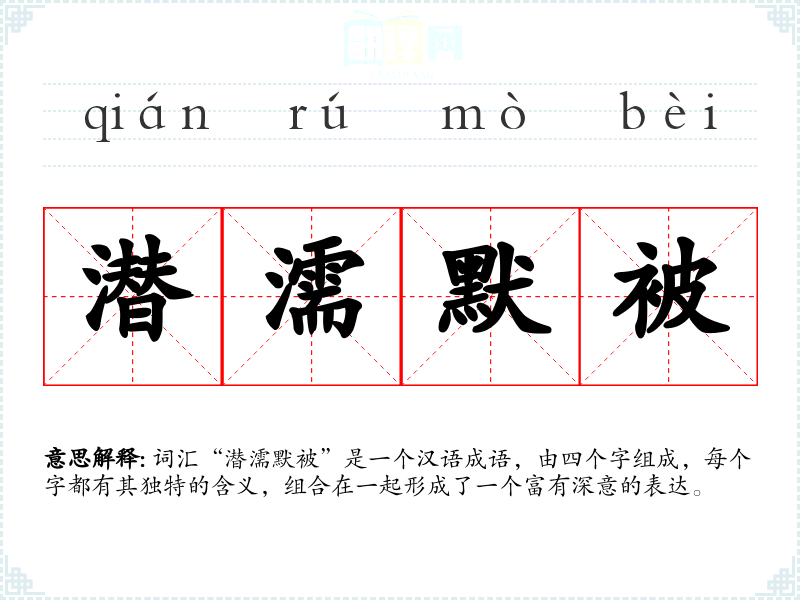 词汇“潜濡默被”是一个汉语成语,由四个字组成,每个字都有其独特的含义,组合在一起形成了一个富有深意的表达。