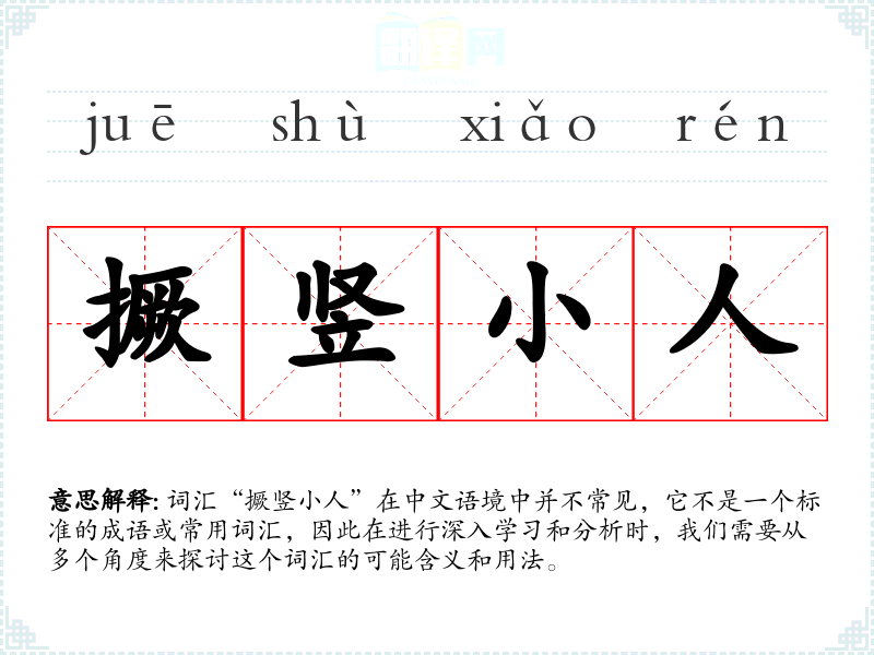 词汇“撅竖小人”在中文语境中并不常见,它不是一个标准的成语或常用词汇,因此在进行深入学习和分析时,我们需要从多个角度来探讨这个词汇的可能含义和用法。