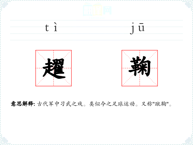 古代军中习武之戏。类似今之足球运动。又称"蹴鞠"。