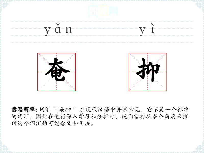 词汇“[奄抑]”在现代汉语中并不常见,它不是一个标准的词汇,因此在进行深入学习和分析时,我们需要从多个角度来探讨这个词汇的可能含义和用法。