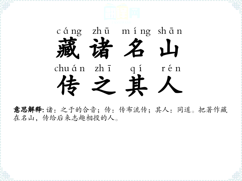 藏诸名山,传之其人的分字解释