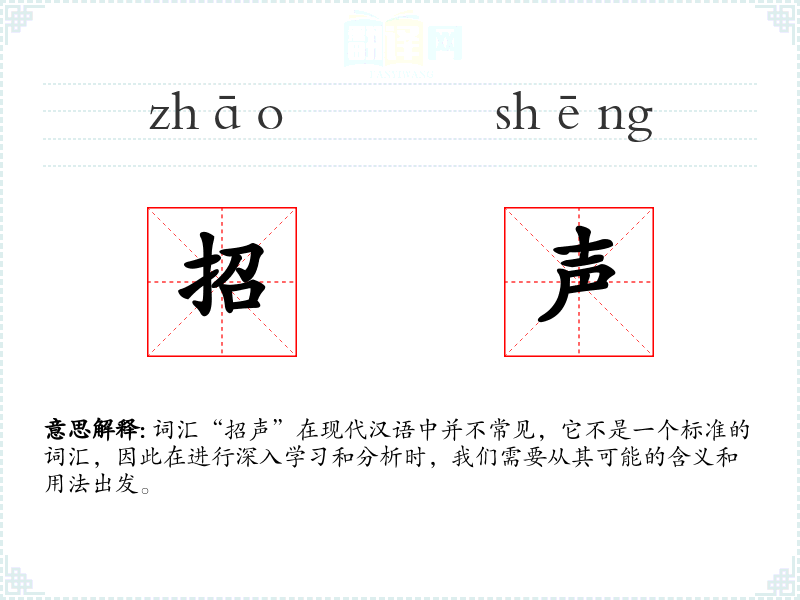 词汇“招声”在现代汉语中并不常见,它不是一个标准的词汇,因此在进行深入学习和分析时,我们需要从其可能的含义和用法出发。