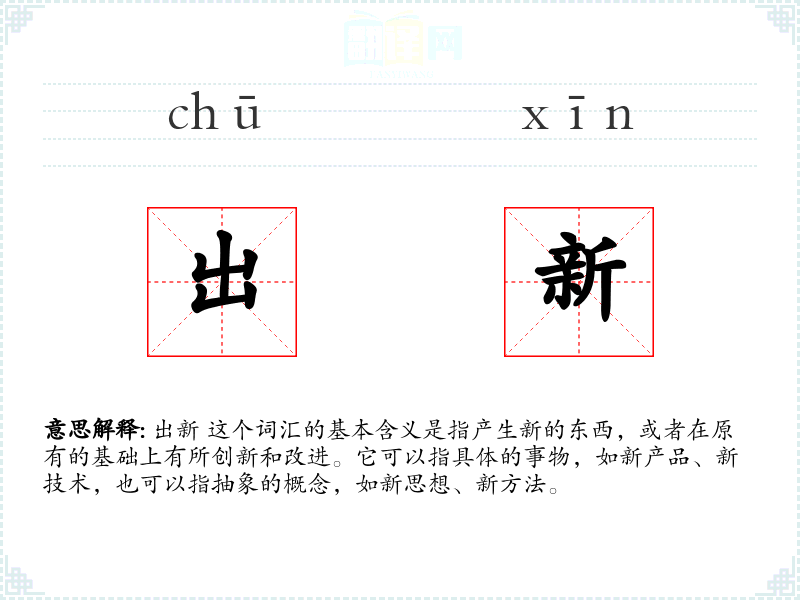 "出新"的意思解释、出新是什么意思由翻译网汉语词典查词提供。