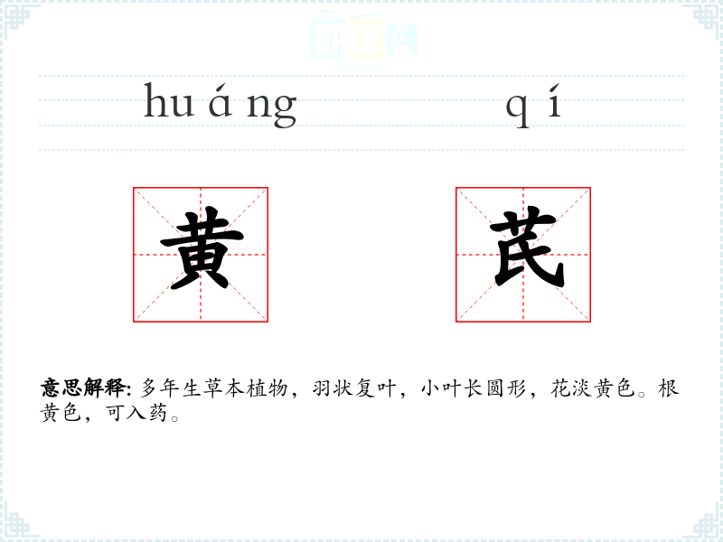 黄芪的分字解释
