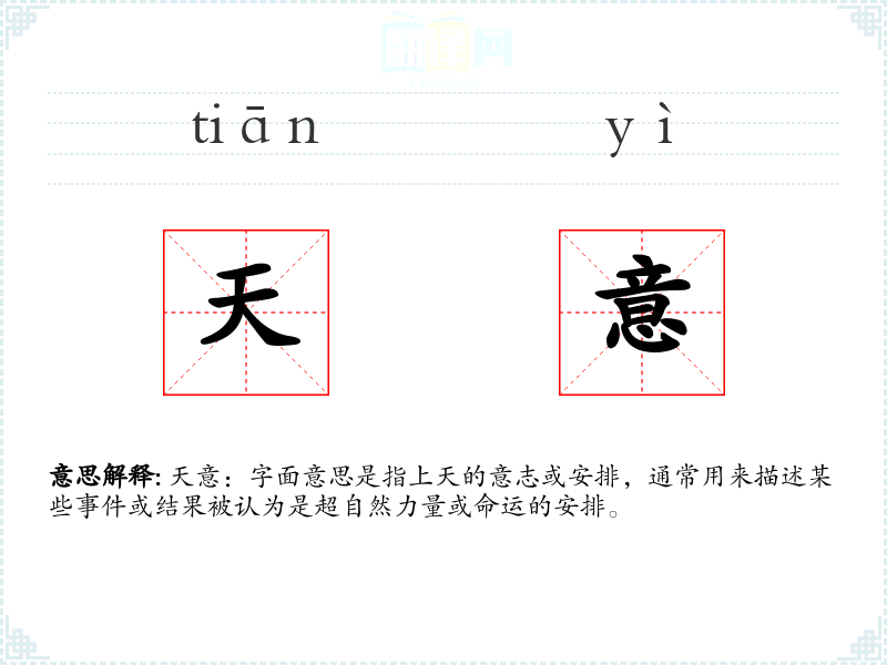 - 文学:在文学作品中,“天意”常用来增添神秘色彩,表达宿命论或不可抗力的主题。