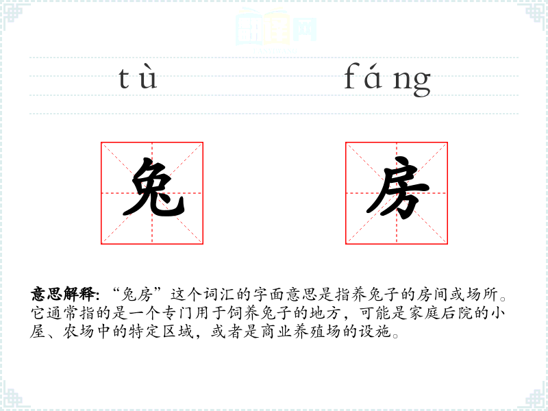 "兔房"的意思解释、兔房是什么意思由翻译网汉语词典查词提供。
