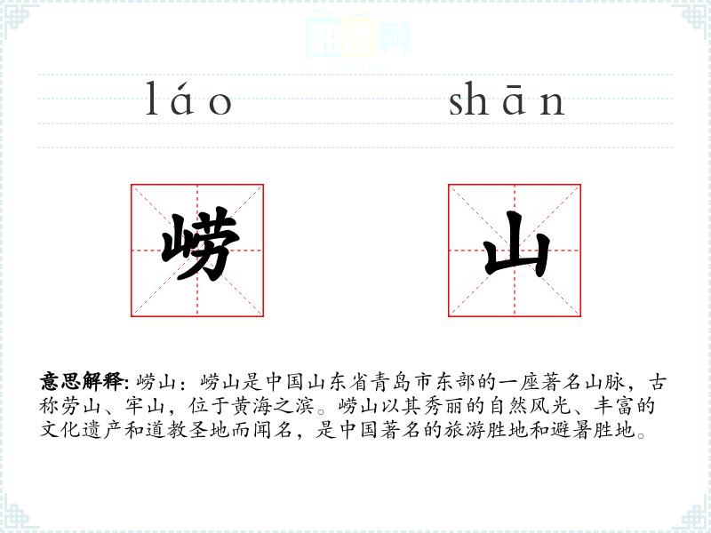 "崂山"的意思解释、崂山是什么意思由翻译网汉语词典查词提供。