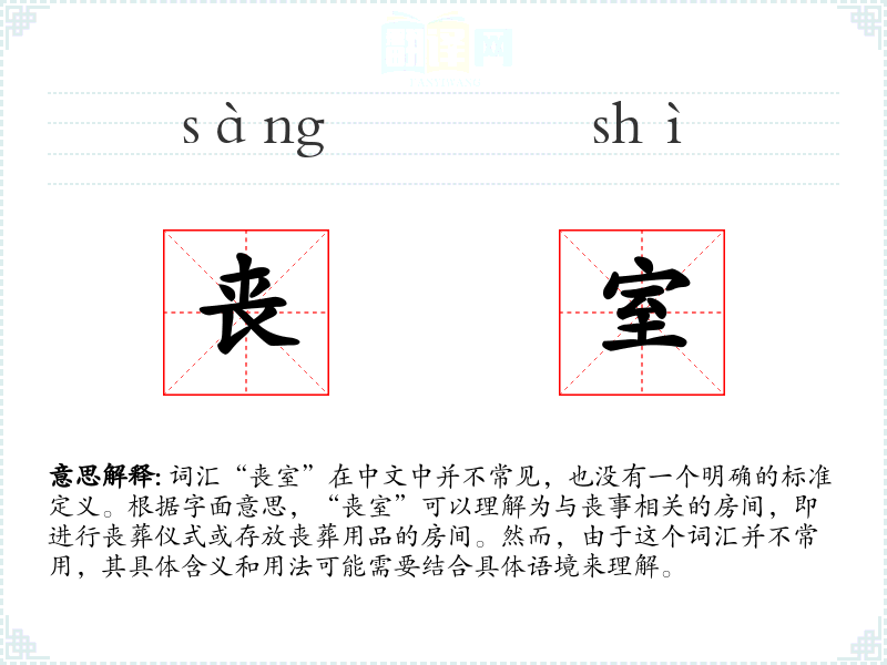 由于这个词汇并不常用,个人在生活中可能很少有机会直接使用或接触到“丧室”这个词。