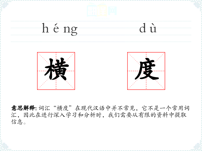 词汇“横度”在现代汉语中并不常见,它不是一个常用词汇,因此在进行深入学习和分析时,我们需要从有限的资料中提取信息。
