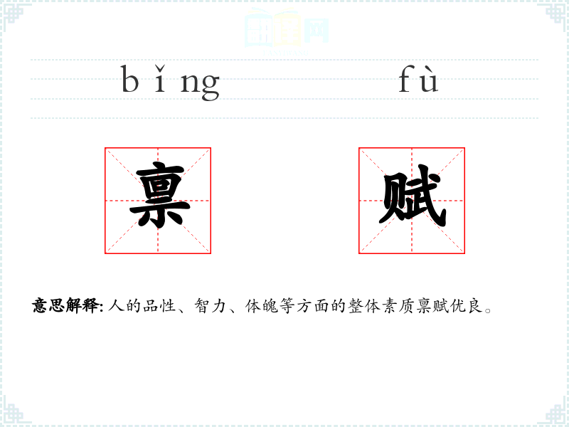 人的品性、智力、体魄等方面的整体素质禀赋优良。