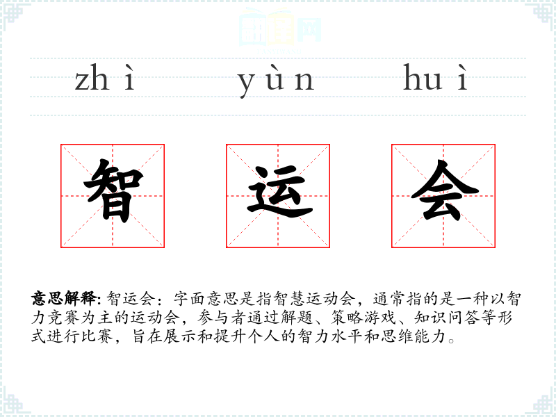 智运会一词可能是近年来随着智力竞赛活动的兴起而新创的词汇,它结合了“智慧”和“**会”两个概念,强调了智力活动的竞技性。