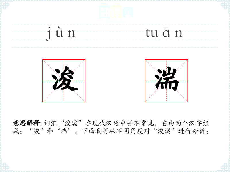 词汇“浚湍”在现代汉语中并不常见,它由两个汉字组成:“浚”和“湍”。下面我将从不同角度对“浚湍”进行分析: